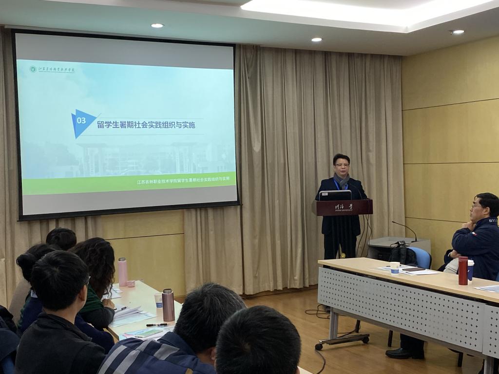 永利官网作为仅有的三所高职院之一在分论坛上作留学生教育管理工作的经验报告。国际教育学院副书记(主持工作)郭俊详细报告了我校留学生2019年暑期社会实践组织与实施情况,获得了会议主办方及留学生管理同仁的高度评价。南京林业大学国际教育学院院长朱剑刚,作为分论坛的主持人,对我校报告作出总结,“实践育人奋战暑期、一带一路显著成绩、双高院校时不我待:农林给力!”