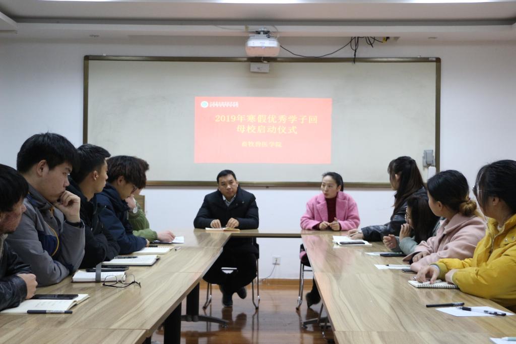 畜牧兽医学院团委、学工办于1月9日晚,在畜牧兽医学院三楼多功能厅举办2020年寒假“优秀学子回母校”社会实践启动仪式,鼓励在校生利用节假日回乡之际,回中学母校开展以“感恩母校、回馈社会”为主题的社会实践活动。