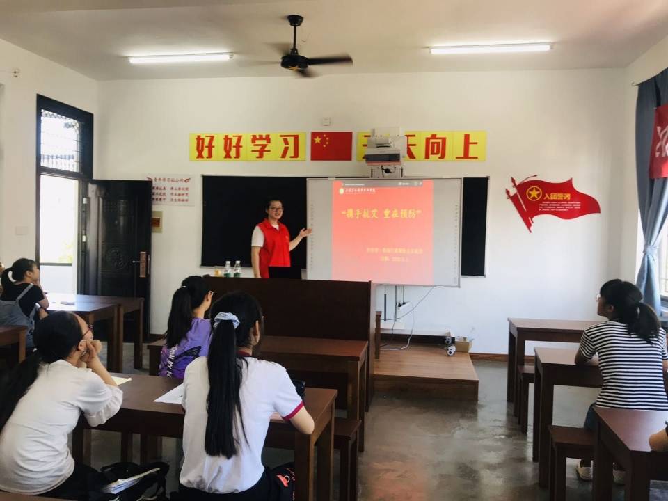 活动中,各队员在家乡与疾控中心,禁毒工作室联系,沟通活动开展内容,通过深入社区居民家庭发放预防毒品、艾滋病知识的宣传手册,开展普及禁毒和防艾政策法规宣讲;组织居民填写毒品和艾滋病常识认知状况问卷调查,进行个案访谈;并走进当学校,开展防艾、禁毒主题教育活动,教会孩子们了解自己的身体秘密,掌握基本的预防性侵知识以及紧急情况下的避险策略,学会保护自己;实践学生还参观了当地禁毒教育基地,实地了解毒品种类及危害,了解毒品患者的戒毒过程及国家对戒毒工作的相关政策。