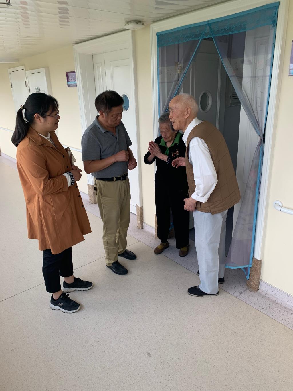 9月30日下午,在国庆、中秋佳节来临之际,学院工会主席江德明、离退休办主任杨春梅等一行来到句容市逸仙颐养院慰问王仲飞、张素月、胡桂文、沈筱耕、陈文英、许荣梅等学院离退休教职工,为他们送去了节日的问候和祝福。