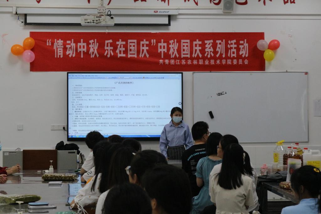 10月1日,由风景园林学院团委承办的“情动中秋乐在国庆”之户外瑜伽活动在体育馆门口与同学们开启假日“派对”。悠扬的音乐声中,同学们跟随老师们完成所有的瑜伽体式,不断突破自己的身体极限,经过老师示范和自由练习后,有三位同学非常出色的完成了后弯体式,在场同学纷纷点赞。由农学园艺学院团委承办的“月满中秋,情满游园”双节同庆游园会活动在北校区励志广场举行,活动分为“张灯结彩,欢度佳节”“诗词荟萃,飞花寻梦”“火树银花,步月登云”“并肩作战,共铸圆满”“欢欣鼓舞,逐星赶月”“团圆走月,相见如愿”“齐聚中秋,圈圈向农”7个活动区,包含猜灯谜、飞花令、弹瓶盖、套圈圈、许心愿、指压板等7个小游戏,同学们通过参与活动收集丝带,参与兑奖。除此之外,活动还准备了精彩的汉服表演。在场师生纷纷参与到精心准备的庆双节活动和趣味体验中,现场热闹非凡。由茶与食品科技学院团委承办的“满月思乡,百味情长”学生动手制作月饼体验活动在实验楼A101烘焙教室举行。第六届江苏省职业焙烤职业技能竞赛获奖二等奖获得者胡钰琦同学一边向学生们讲解如何捏月饼,一边向同学们演示制作过程。同学们充分发挥想象,动手制作自己的中秋月饼,从揉皮、擀皮、包陷、压制成型,不亦乐乎。由信息工程学院团委承办的露天观影活动在图书馆前广场如期举行。活动开始前,全场千余名同学齐唱歌曲《今天是你的生日》祝福祖国母亲生日快乐,在音乐衬托下,同学们打开手机灯光,随着节奏在夜空中摇晃。当电影里国歌声响起,五星红旗冉冉升起的那一刻,同学们自觉起立,高唱国歌,表达了对祖国母亲崇高的敬意。三轮有奖知识抢答环节将观影活动推向高潮。