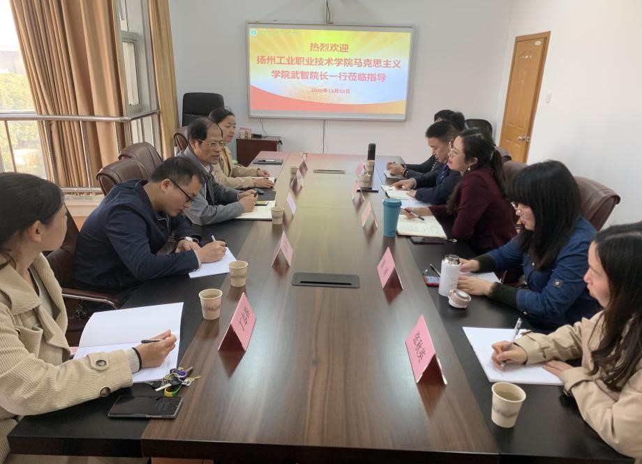 10月23日上午,扬州工业职业技术学院马克思主义学院武智副院长等一行5人来永利官网考察交流。马克思主义学院院长马万顺、副院长陈立娥及部分思政教师参加了交流会。
