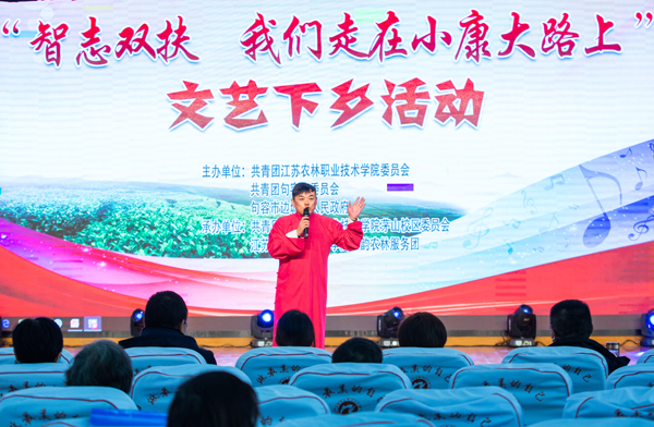 为深入学习贯彻习近平新时代中国特色社会主义思想,培育和践行社会主义核心价值观,11月29日,茅山校区团委联合句容团市委、句容市边城镇人民政府来到边城中心小学,开展了“智志双扶 我们走在小康的大路上”文艺下乡活动,助力乡村振兴。句容团市委书记蔡艳、边城镇宣传委员夏建玲、边城镇中心小学副校长吕一鸣、茅山校区党总支副书记汤波、校区65名师生和该村340余名干部群众共同享受了这顿“文化大餐”。