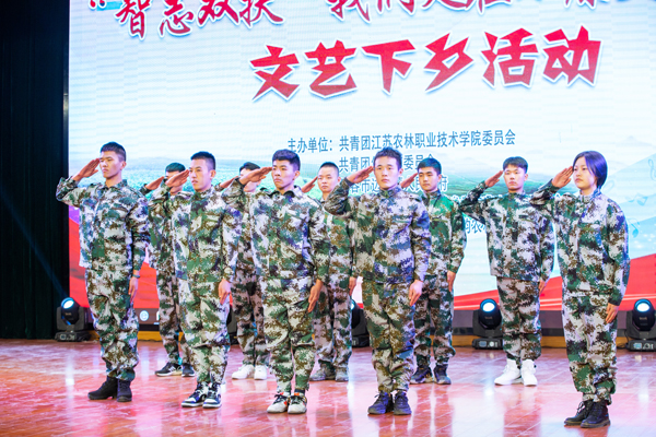 文艺演出以欢快的开场舞《采茶舞》拉开序幕,采茶舞表现了采茶时的欢快情绪,再现了采茶姑娘青春焕发的风貌。演出形式丰富、节目内容新颖,有藏族同学带来的舞蹈《雄鹰展翅》、茶诗朗诵《给语爱茶人》,还有中国传统文化武术、茶艺等表演。期间,周杨维子带来的《我和我的祖国》唱出了青年学子对祖国的深情告白,钱志洋等10名退役军人带来的舞台剧《强军战歌》,他们穿着军装,以英姿飒爽的身影展现了军人的风采,向全场观众展现了新时代农林青年学子的远大抱负。