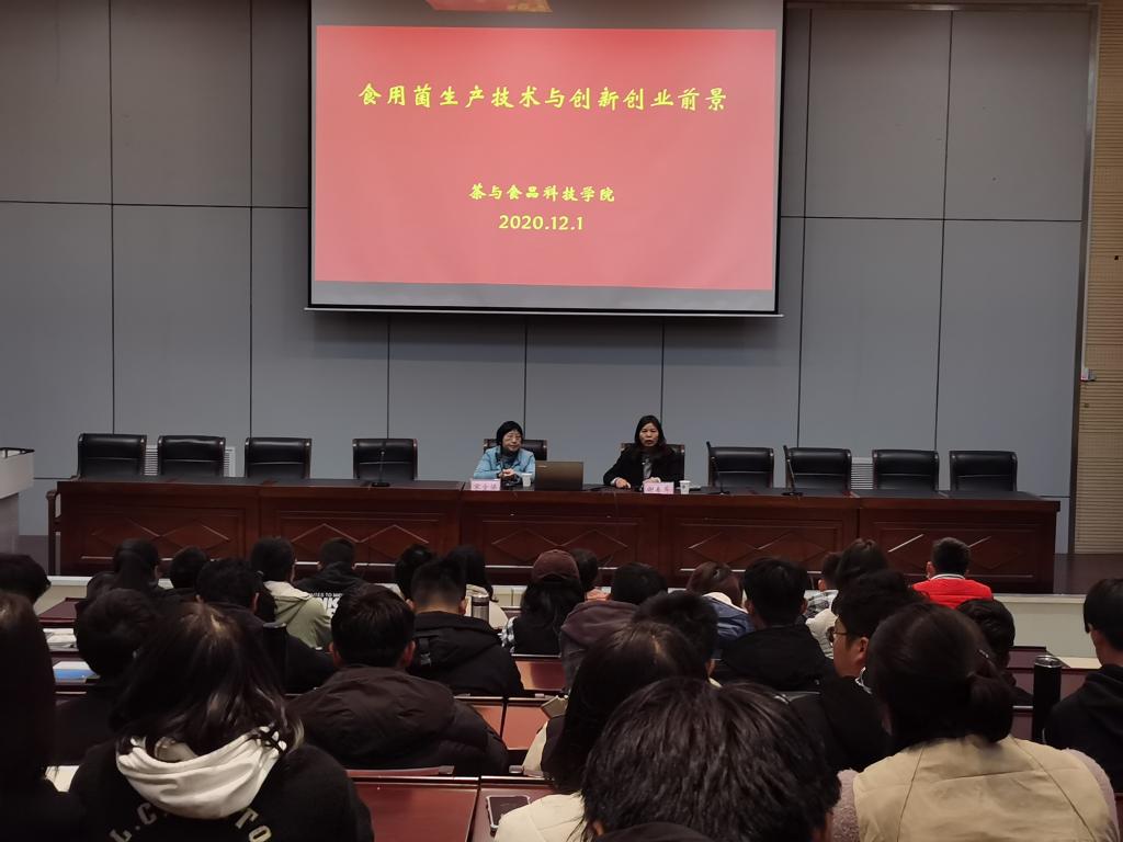 12月1日下午,茶与食品科技学院在研发楼报告厅开展名企工匠进校园系列活动之“食用菌生产技术与创新创业前景”专题讲座,邀请了江苏蕈源种业有限公司宋金俤研究员主讲,相关专业的同学参加了本次活动。