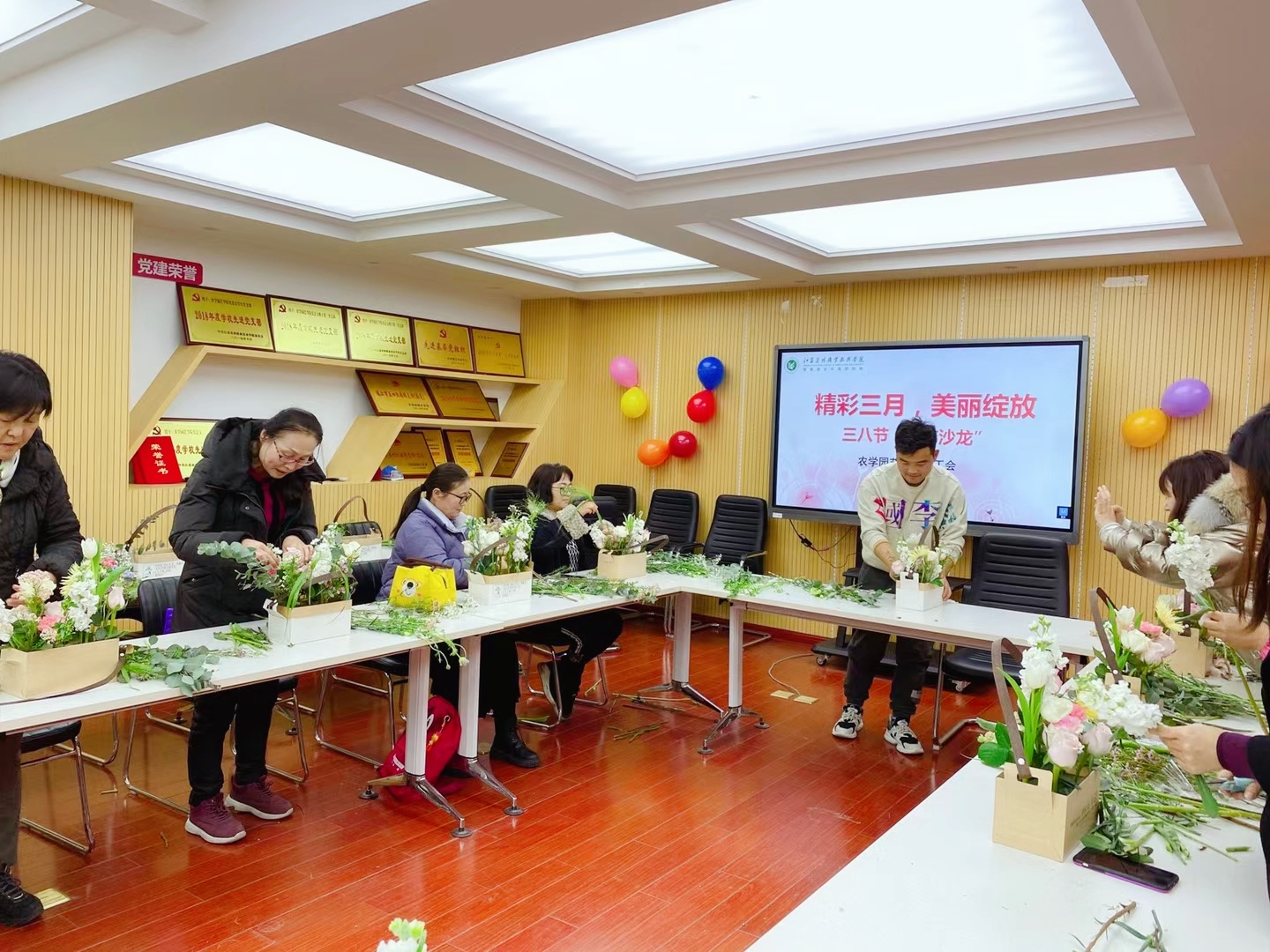 3月5日下午,农学园艺学院于举行了“精彩三月,美丽绽放”花艺沙龙活动。在老师的指导下,女教师们认真修剪、构思布局,利用花材和花盒制作出一盆盆错落有致、造型优雅的花艺作品。目前,农学园艺学院共有女教职工36人,她们在学院教学科研、学生管理、基地建设、社会服务等工作中贡献巾帼之力,彰显巾帼之美,充分发挥了“半边天”的重要作用。