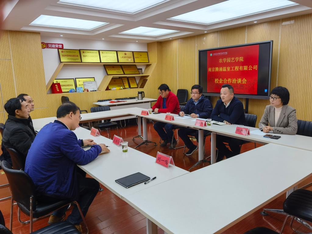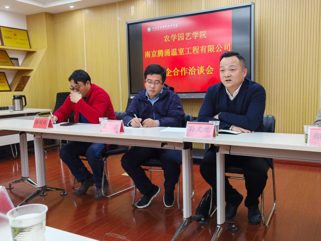 3月15日,农学园艺学院与南京腾涌温室工程有限公司、江苏千谷汇农业科技股份有限公司在研发楼二楼会议室召开校企合作洽谈会,学院副院长解振强、党总支副书记王全智、教研室主任及相关专业老师参加了洽谈。