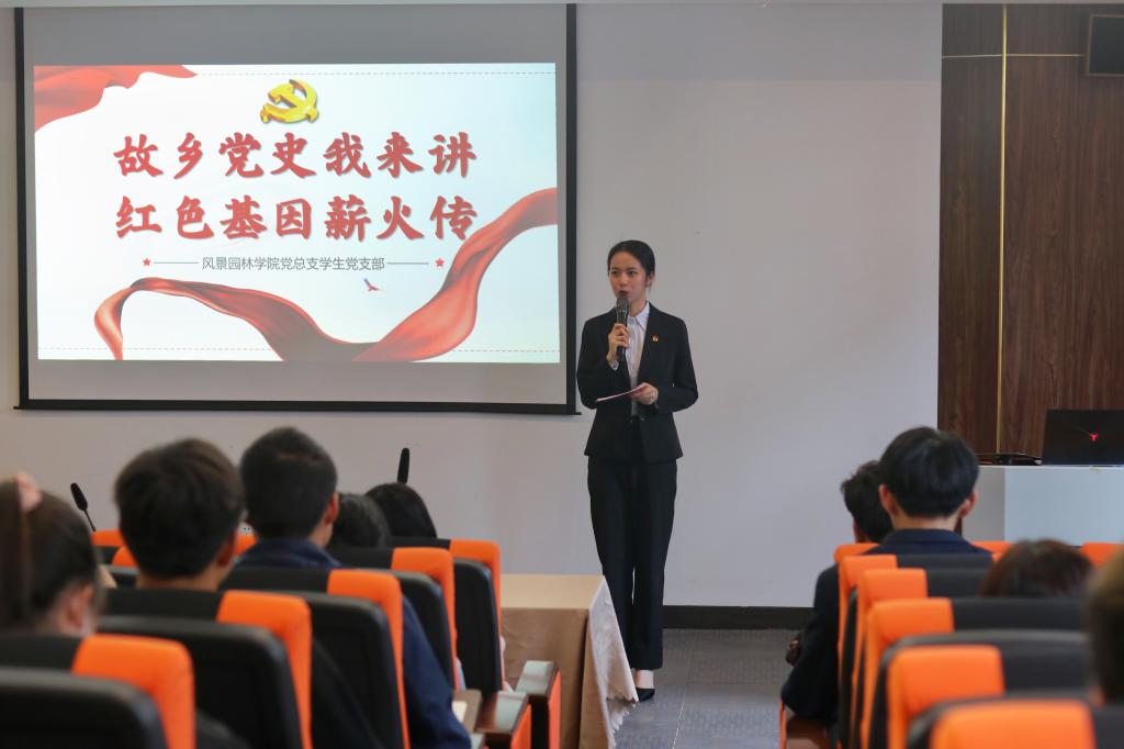 为深入推进党史学习教育,丰富党史学习形式,号召学生走进家乡党史故事,自觉继承革命传统、传承红色基因。4月25日下午,风景园林学院党总支学生党支部在创客中心207报告厅开展了“故乡党史我来讲,红色基因薪火传”专题活动。师生党员、先进积极分子们参加了此次活动。