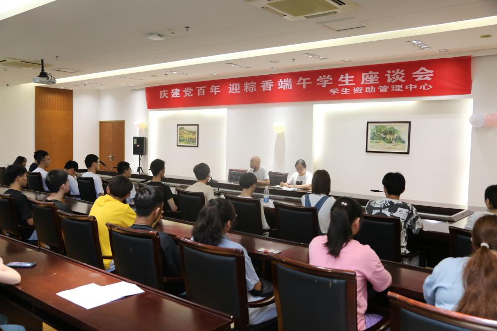6月11日下午,学生资助中心召开“庆建党百年 迎粽香端午”家庭经济困难学生座谈会。