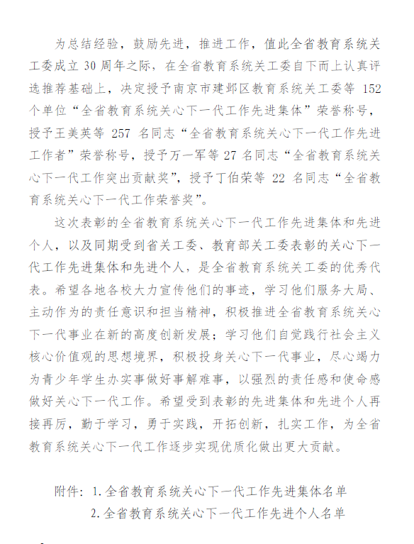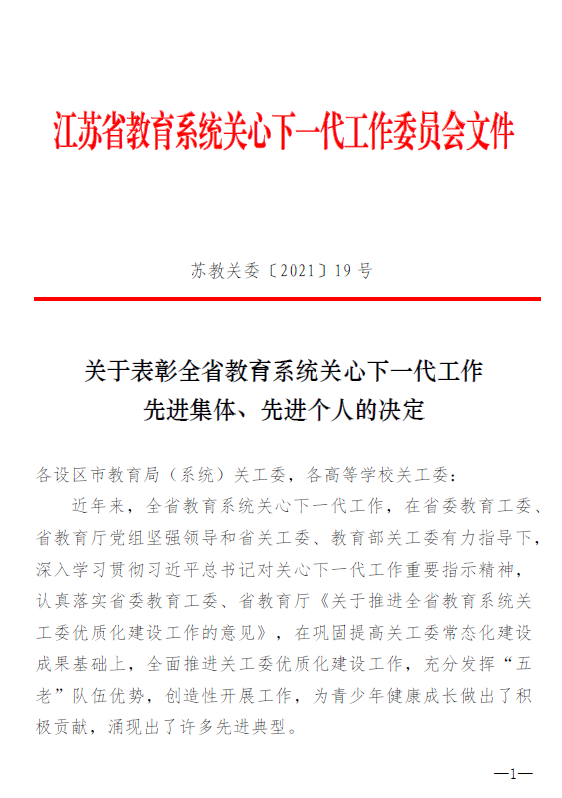 日前,我校关工委被省级教育系统关工委评为先进集体,钱兴霞同志被评为先进工作者,双获表彰。