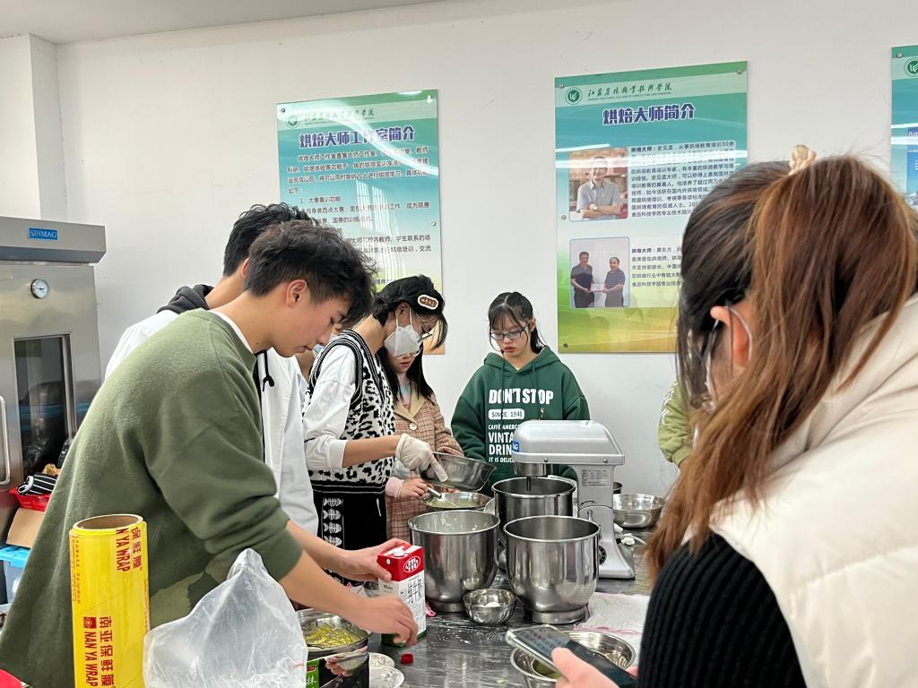 本次活动结合茶与食品科技学院专业特色,以“千层蛋糕制作”为主题展开。活动过程中,同学们小组协作,经过黄油打发、奶油调制、蛋糕雏形制作、烤箱烤制等环节,顺利完成本次活动。此次活动不仅让同学们锻炼了专业技能,提高实践能力,也让同学们在沟通协作中了解他人,认识自我。