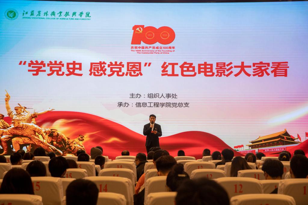 学党史,感党恩,以“影”为媒,以史为“鉴”。为了巩固信息工程学院党史学习成果,让全院师生深入了解党的百年辉煌,激发大家的爱党、爱国的情感,进一步推动党史学习教育走深走实,11月30日晚,“学党史 感党恩”红色电影大家看学党史活动开幕式在图书馆报告厅举行,学院党委副书记曹仁勇、相关职能部门及各党总支负责人和全院140余名师生一起参加了开幕式。