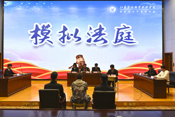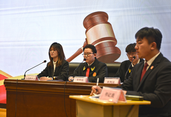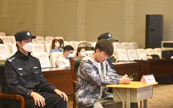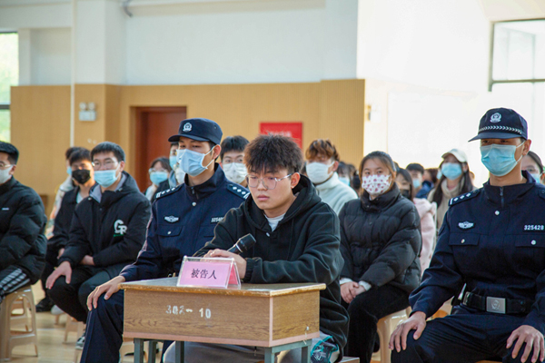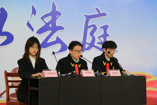 “现在开庭!”随着审判长的法槌敲击,庭审现场一片庄严肃静。本次“模拟法庭”分法庭调查、举证质证、法庭辩论、庭审教育、法庭判决等环节。现场,同学们慷慨激昂、义正辞言,生动地展示了司法工作人员认真、严谨、一丝不苟的法律工作态度以及公平、公正的法律工作精神,营造出了法庭严肃、庄重的氛围,让所有在场的旁听人员都真正融入到了整个审判过程中。