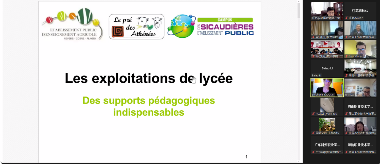 此次中法“肉牛养殖”交流研讨会是疫情期间中法院校间通过视频会议方式开展的第一次交流活动,会议由中法农业培训和乡村振兴服务中心主办,共有宝鸡职业技术学院、铜仁职业技术学院、宜宾职业技术学院、遵义职业技术学院等20家中法院校的近120名代表参会。