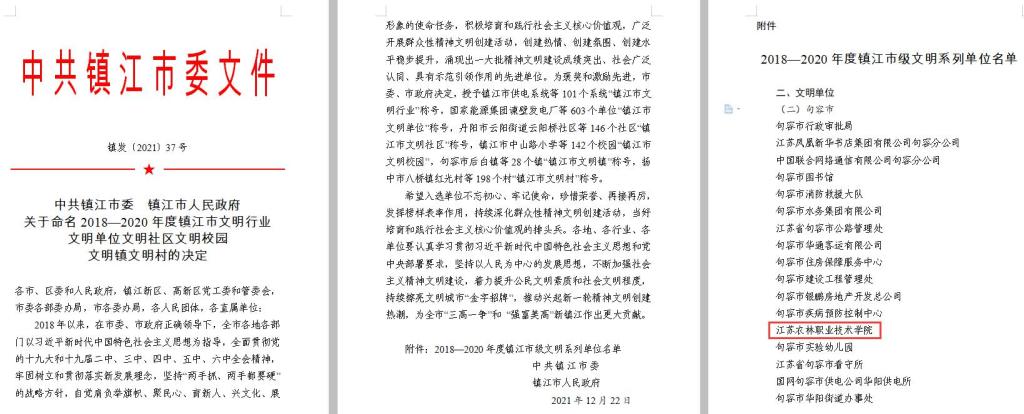 日前,中共镇江市委、镇江市人民政府公布了《关于命名2018—2020年度镇江市文明行业文明单位文明社区文明校园文明镇文明村的决定》(镇发〔2021〕37号),永利官网荣获“2018-2020年度镇江市文明单位”荣誉称号。