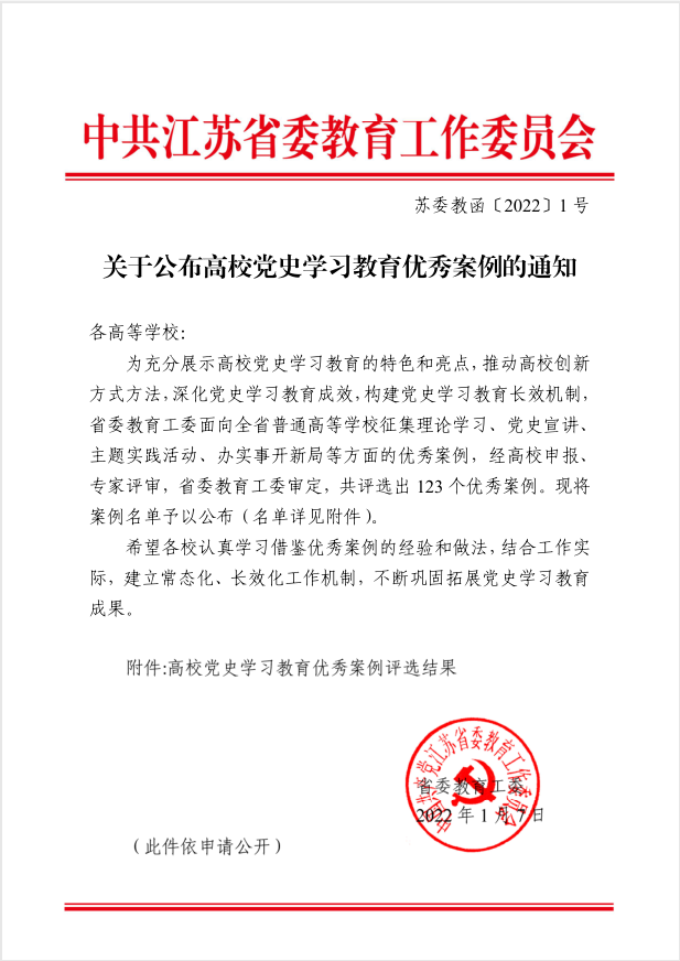 近日,省委教育工委向全省高校征集了党史学习教育特色亮点案例,经学院申报、专家评审、省委教育工委审定,永利官网报送的《我为群众办实事亚夫团队显担当》获评“办实事开新局类”优秀案例。