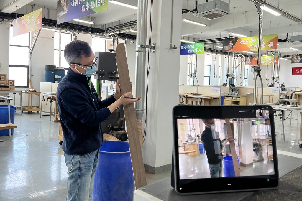 木材科学教研室主任陈慧敏老师,他作为风景园林学院教工第一党支部书记,带头留校,参加疫情防控工作。对于教学他说:“我教的是家具制造工艺课程,实践性非常强,线上授课学生很难理解,正好我在校内,可以通过直播的方式讲解设备原理、结构、调试方法、木材切割技术技巧等,给学生授课,这样更直观,不至于照本宣科。”