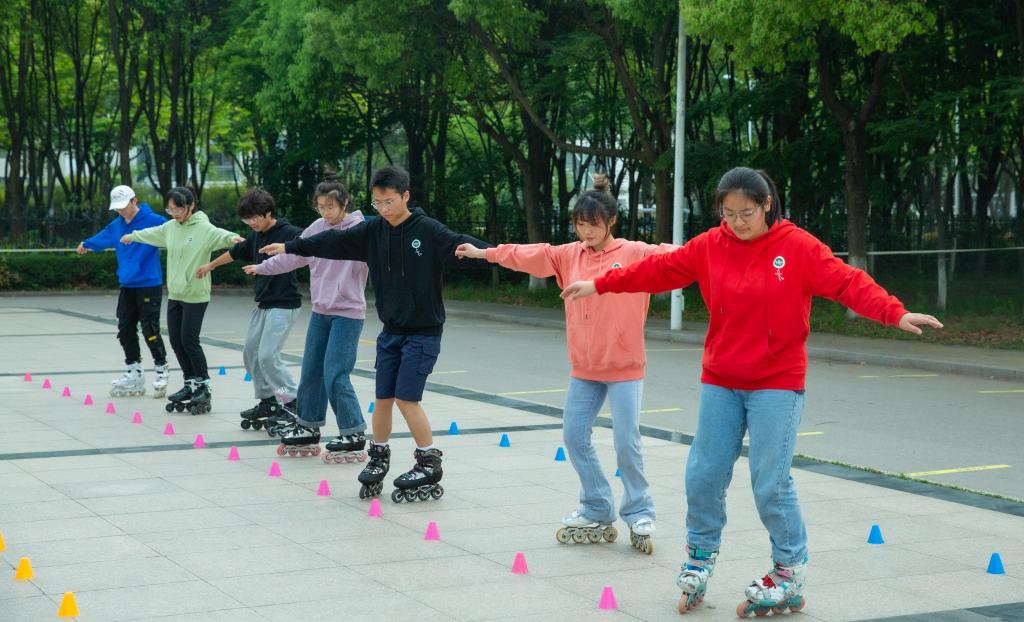 趣味运动会设户外瑜伽、象棋比赛、篮球障碍跑、跳绳比赛、轮滑展示、本草纲目毽子操和同心鼓等七个项目。由风景园林学院团委承办的户外瑜伽在体育馆西广场与同学们一起体验能屈能伸的世界,悠扬的音乐声中,同学们学习了下犬、平板等瑜伽体式,不断突破身体极限,经过老师示范和动作纠正后,最后刚柔并济的完成了练习。由信息工程学院团委承办的象棋比赛在工科楼南广场举行,海棠树下,参赛选手们在“楚河汉界”小小棋盘上展开了斗智斗勇的智慧博弈,见招拆招、你来我往、各显神通,大家都乐在“棋”中。由茶与食品科技学院团委承办的篮球障碍跑活动在篮球场举行,活动中参赛选手们争分夺秒,绕过重重障碍将球投入篮筐中,赢得现场阵阵喝彩和欢呼,参赛选手们展示了奋力拼搏的体育精神,也弘扬了青春向上的正能量。由机电工程学院团委举办的跳绳比赛在田径场北侧举行,男、女组依次上场,分别进行1分钟和2分钟计时挑战,随着一声“开始”,只见选手们一个个手摇得飞快,你追我赶,在场的其他选手也不甘示弱、跃跃欲试,加油声、呐喊声此起彼伏。由农学园艺学院团委承办的轮滑展示活动在体育馆西广场举行,T-max轮滑社团带来了平花展示、刹车表演等,整个过程具有极高的观赏性,赢得在场观众的阵阵惊叹。由经济与人文学院团委承办的本草纲目毽子操比赛在田径场北侧举行,本草纲目毽子操动感十足、简单易学,选手们在欢乐气氛中踩着音乐鼓点,元气满满地完成了比赛,同学们不仅解锁了锻炼的新花样,还增强了身体素质,有利于提高免疫力。由畜牧兽医学院团委承办的“同心鼓”比赛项目在田径场草地拉开帷幕,比赛集默契配合、技术技巧于一体,10人为一组,每人牵拉一根鼓上的绳子,同心协力将鼓腾空,击鼓颠球,比赛中同学们发挥出了最强的凝聚力和战斗力。
