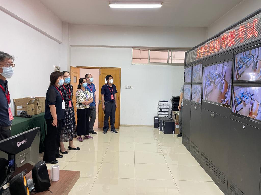 考务工作领导小组成员在视频监控室巡视整个考区所有考场