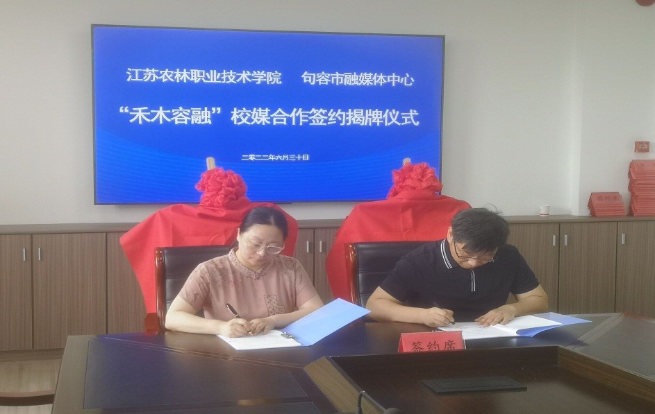 6月30日下午,经济与人文学院与句容市融媒体中心举行“禾木容融”校媒合作签约及揭牌仪式。