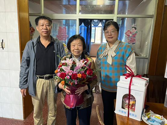 金秋时节,丹桂飘香。10月4日,在重阳节到来之际,学院工会、离退休办开展重阳节走访慰问活动。离退休办公室主任杨春梅,关工委常务副主任、离退休党支部书记江德明等一行参加了走访慰问。