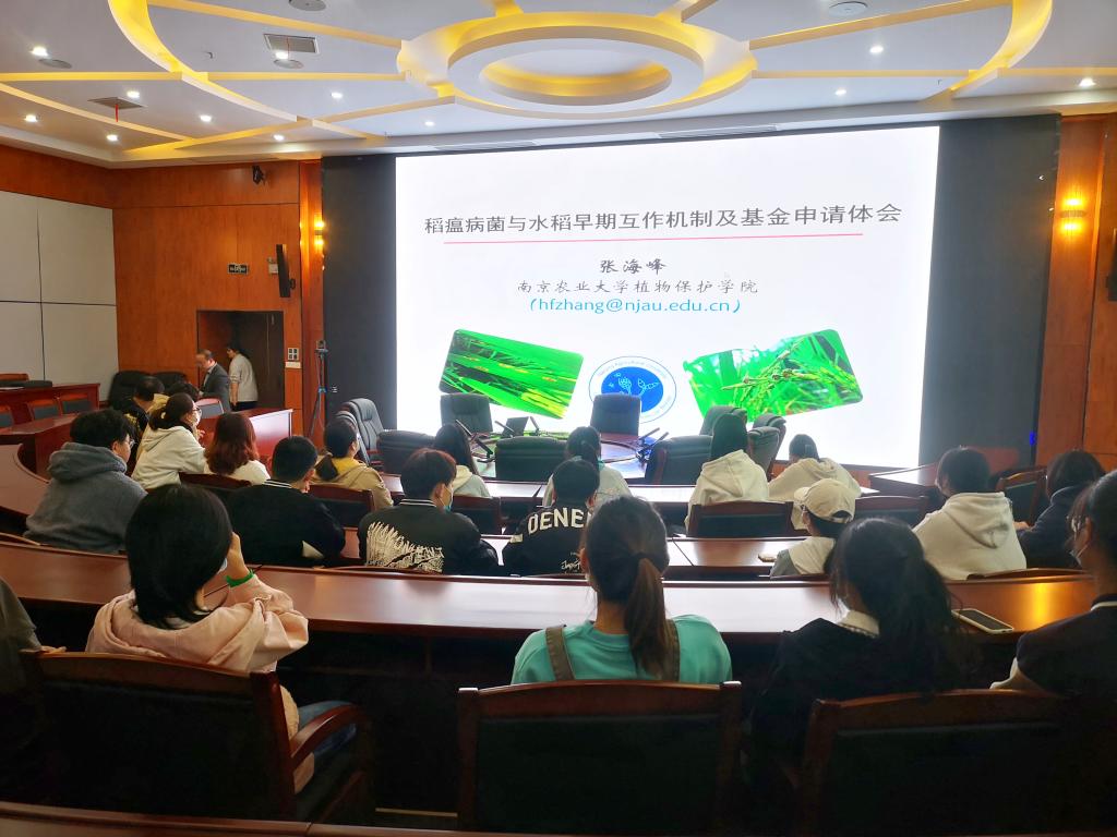 本次活动邀请了南京农业大学张海峰教授和风景园林学院陈佳佳副教授分别就“稻瘟病菌与水稻早期互作机制及基金申请体会”和“从事基础研究转型的探索与思考”进行经验分享与交流。张海峰教授结合自身多年国家自然科学基金项目的申报经验进行详细讲解,重点强调了基金申报是一个系统性、延续性的过程,要重视选题的科学性,将与本项目直接相关的工作基础做牢、做实。陈佳佳副教授从自身的科研工作说起,谈到了基础科研及科研团队的重要性,同时强调在申请书撰写中要重视科研诚信、科研伦理和学术道德,杜绝科研不端行为的发生。