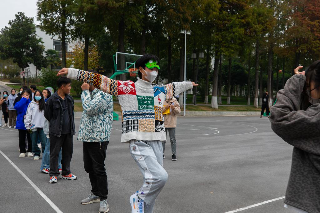 活动包含“破冰活动:认识你真好——大风吹”“分组活动:你是我的有缘人——随机报数”“协作活动:你中有我——团队合作”“集体力量活动:速度大比拼——风火轮”“协作活动:你是我的眼——你比我猜”等五个环节。活动中,同学们积极投入,热情参与,团队合作,展示自我,特别是在速度大比拼——风火轮活动环节,各小组提前演练,商议战术,团结协作,你追我赶,获胜时拥抱庆祝,失败时相互鼓励,在不知不觉收获了友谊,体验成功的快乐。