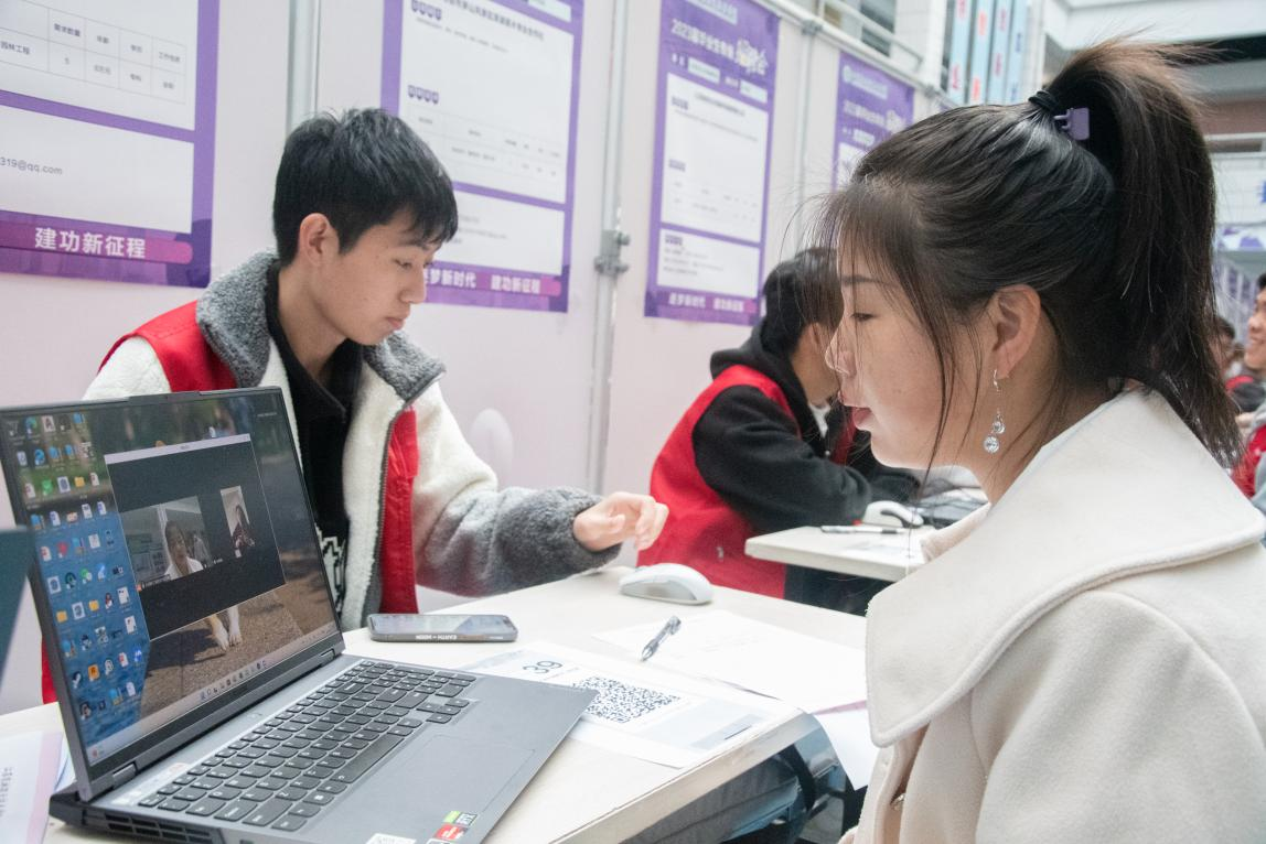 因受疫情影响,本次双选会采用线上与线下相结合的方式开展。招聘会当天,毕业生通过志愿者代收纸质简历、向招聘会现场单位海报邮箱投递电子简历、扫描二维码加入单位招聘群这三种方式应聘心仪的单位。同学们累计投递纸质简历2155份,电子简历3200余份,求职热情高。