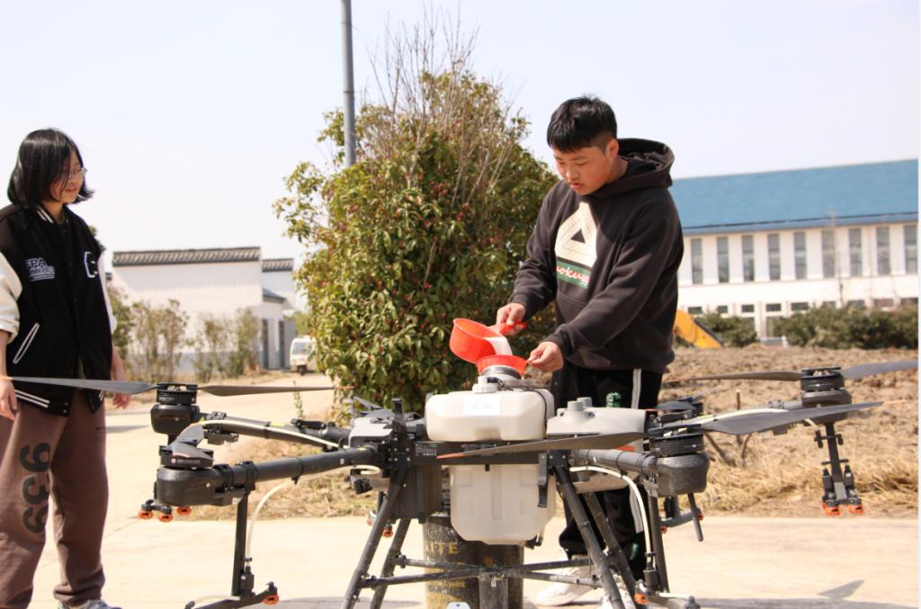3月19日机电工程学院惠农飞防公益助农社团到后白镇古村村开展无人机植保志愿服务活动。同学们熟练完成田块测绘、装药、喷洒作业、设备清洗保养等,帮助当地农户完成了五十多亩果树的植保。永利官网“亚夫科技服务团队”相关老师现场进行了技术指导。