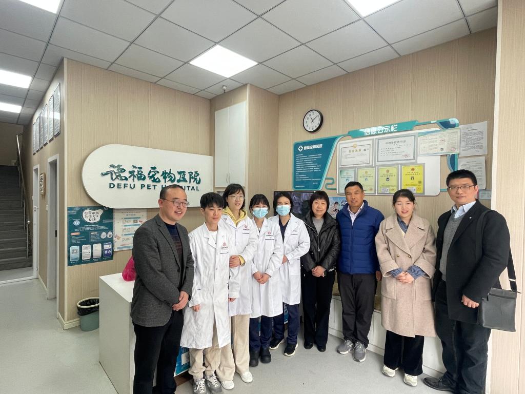 走访中,贾君和03动物医学班校友-无锡德福宠物医院院长于丽萍开展亲切交谈。于丽萍回顾了在校期间的学习经历,交流了毕业生的创业心得,介绍了无锡宠物行业的发展现状,就毕业生融入宠物医疗及用品零售等行业的优势和缺失进行探讨,并欢迎学生来实习和就业。