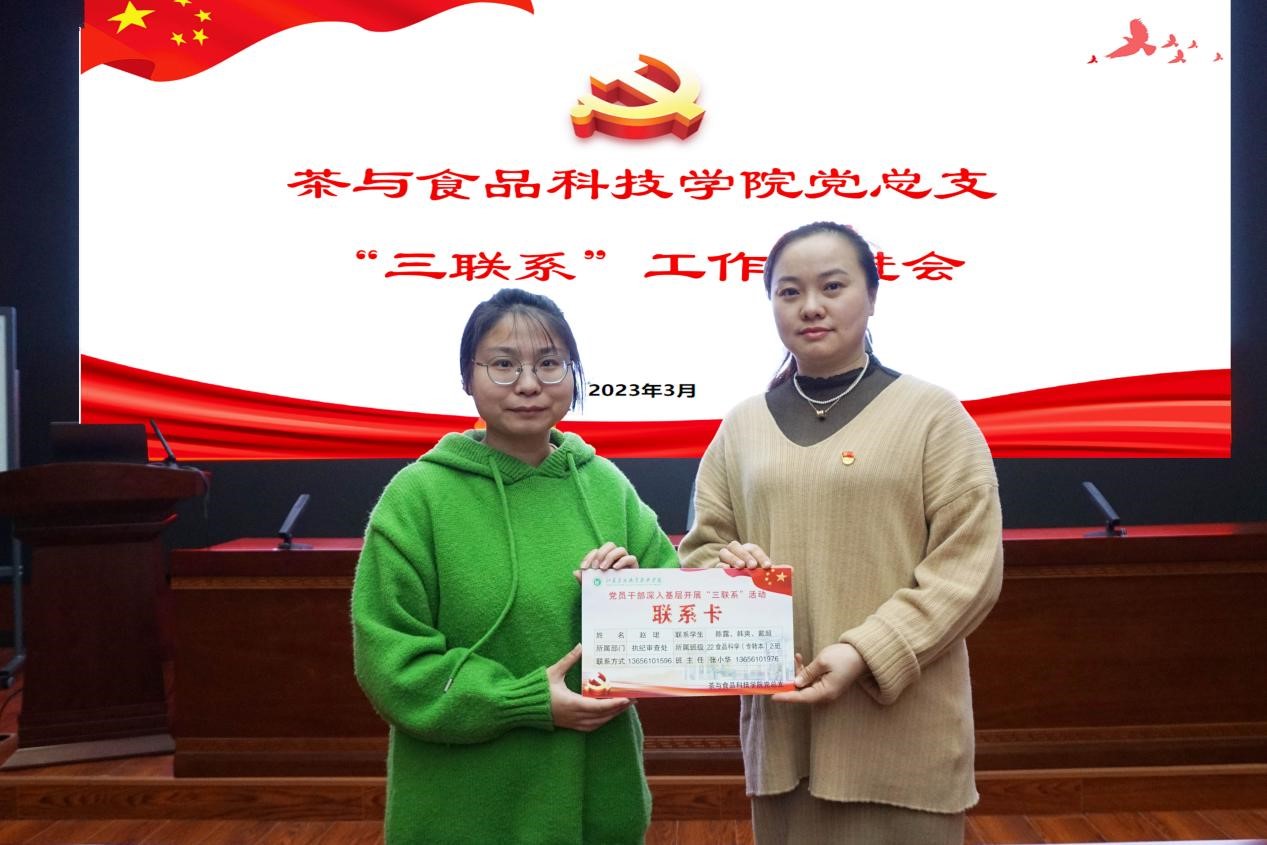 为推进党员干部深入基层调查研究,密切与学生的联系,提升学生思政工作水平,3月27日下午,茶与食品科技学院在大学生艺术中心101开展“三联系”工作推进会。党委委员、纪委书记周国义,纪委办公室、执纪审查室、体育部、茶与食品科技学院等部门负责同志、党员同志,班主任代表、学生代表参加了会议。会议由茶与食品科技学院党总支书记谢春芹主持。