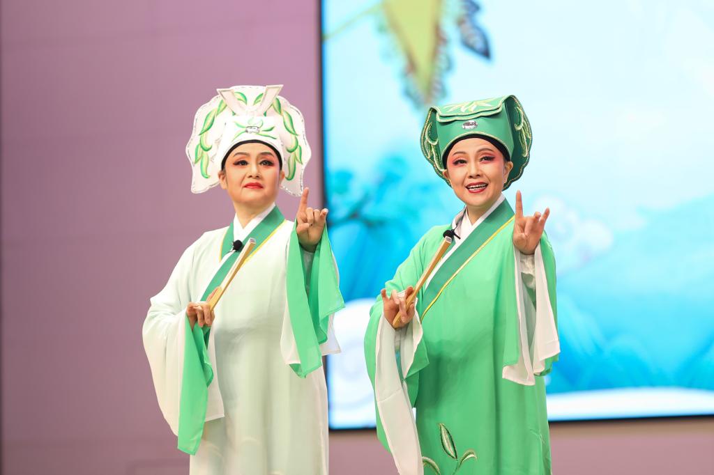 为了让学生更好地理解剧情和掌握戏曲知识,创造性地将评书融入其中,以“戏曲+评书”的形式,实现戏曲表演与评书串讲的完美结合。评书特有的叙事特色将戏曲的事娓娓道来,让观众沉浸在戏曲跌宕起伏的剧情体验中,人在戏中行,仿若戏中人。活动在市艺术创作研究中心主任、国家一级演员、中国戏剧梅花奖得主龚莉莉倾情演唱的扬剧戏歌《一眼看千年》中圆满落下帷幕。