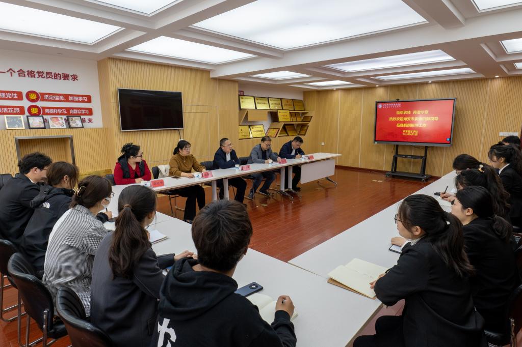 4月2日上午,海安市委组织部部务委员、人才办主任王桂江一行来院调研交流。学院妇联主席杨春梅、农学园艺学院党总支副书记王全智及海安籍“定制村干”学生代表参加座谈会。