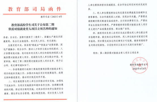 教育部供需对接就业育人项目是落实党中央、国务院“稳就业”“保就业”决策部署的一项重要举措。通过项目方式实施,更好促进产教融合、校企合作。