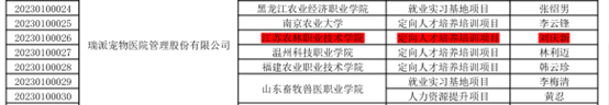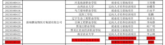 4月6日,教育部高校学生司发布《教育部高校学生司关于公布第二期供需对接就业育人项目立项名单的通知》(教学司【2023】6号),畜牧兽医学院与瑞派宠物医院管理股份有限公司、新瑞鹏宠物医疗集团有限公司、名将宠美教育科技(北京)有限公司、江苏中洋集团股份有限公司等8个供需对接就业育人项目顺利通过审批,获准立项。