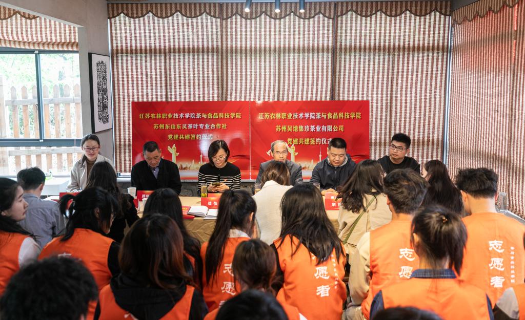 活动中,校企双方举行党建共建签约仪式,在“组织共建、人才共育、活动共抓、服务共促”等方面初步达成合作意向。茶与食品科技学院党总支聘请施跃文、顾晓军、唐华军3位非物质文化遗产碧螺春制作技艺代表性传承人担任校外指导教师,并发放聘书。