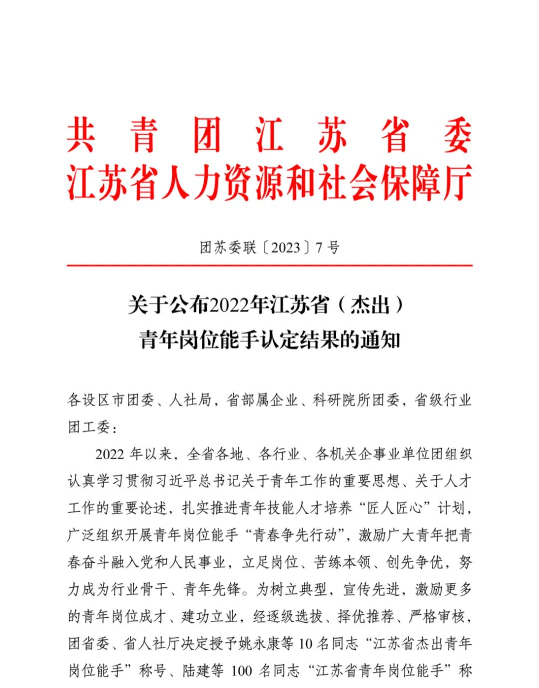 为深入学习贯彻习近平总书记关于青年工作的重要思想、关于人才工作的重要论述,激励广大青年立足岗位、创先争优,近日,团省委联合省人社厅开展2022年江苏省(杰出)青年岗位能手评选认定工作。永利官网风景园林学院教师叶希珈荣获“江苏省杰出青年岗位能手”。