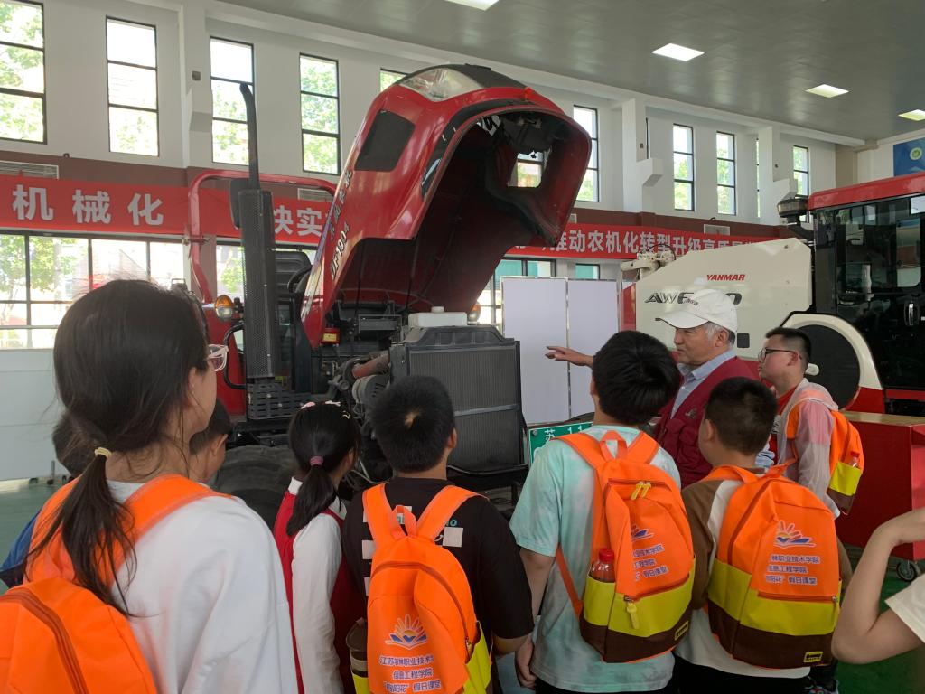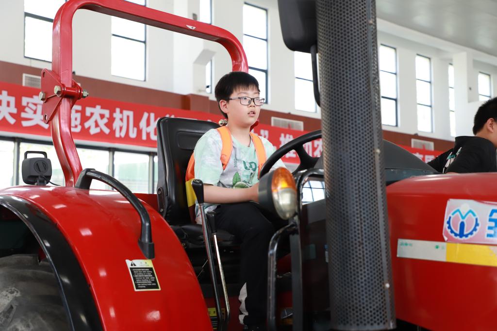 活动中,孩子们在志愿者的带领下,在实训楼和志愿者一起动手制作“迎百年校庆”芯片,在工科楼通过农业物联网培训系统学习智慧农业知识,参观现代农业装备工程中心,听老师讲解农机知识,坐在大型收割机上,零距离接触农业机械,感受现代农业的科技魅力。
