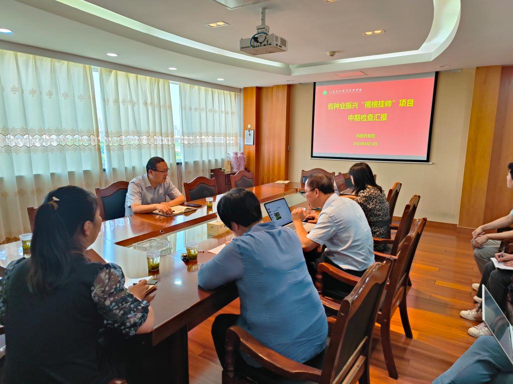 为进一步加强对学院在研科技项目的管理督导,推进项目有序实施,确保项目按时、保质地完成各项任务指标,科技开发处于6月12日组织开展省种业“揭榜挂帅”项目中期检查活动。党委副书记曹仁勇,科技开发处处长陈军,风景园林学院院长刘玉华,茶与食品科技学院院长曹正、党总支书记谢春芹及各项目课题组相关人员参加本次活动。