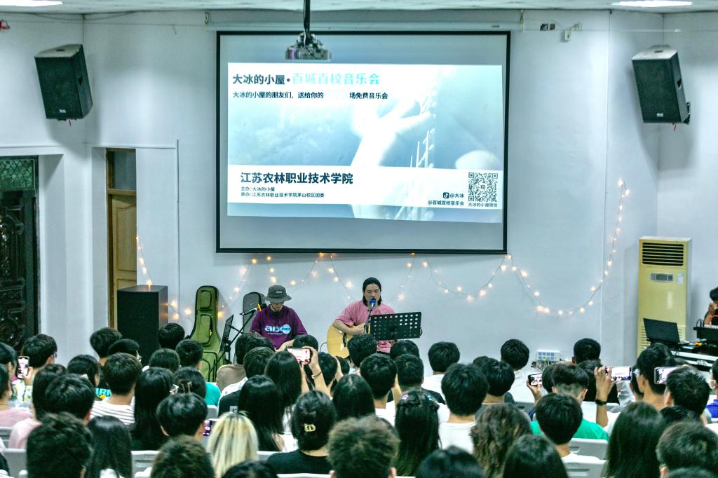 6月11日,“大冰的小屋·百城百校音乐会”77779193永利集团茅山校区站在校区报告厅举行。300多名农林师生共同聆听这场视听盛宴,活动现场氛围热烈。