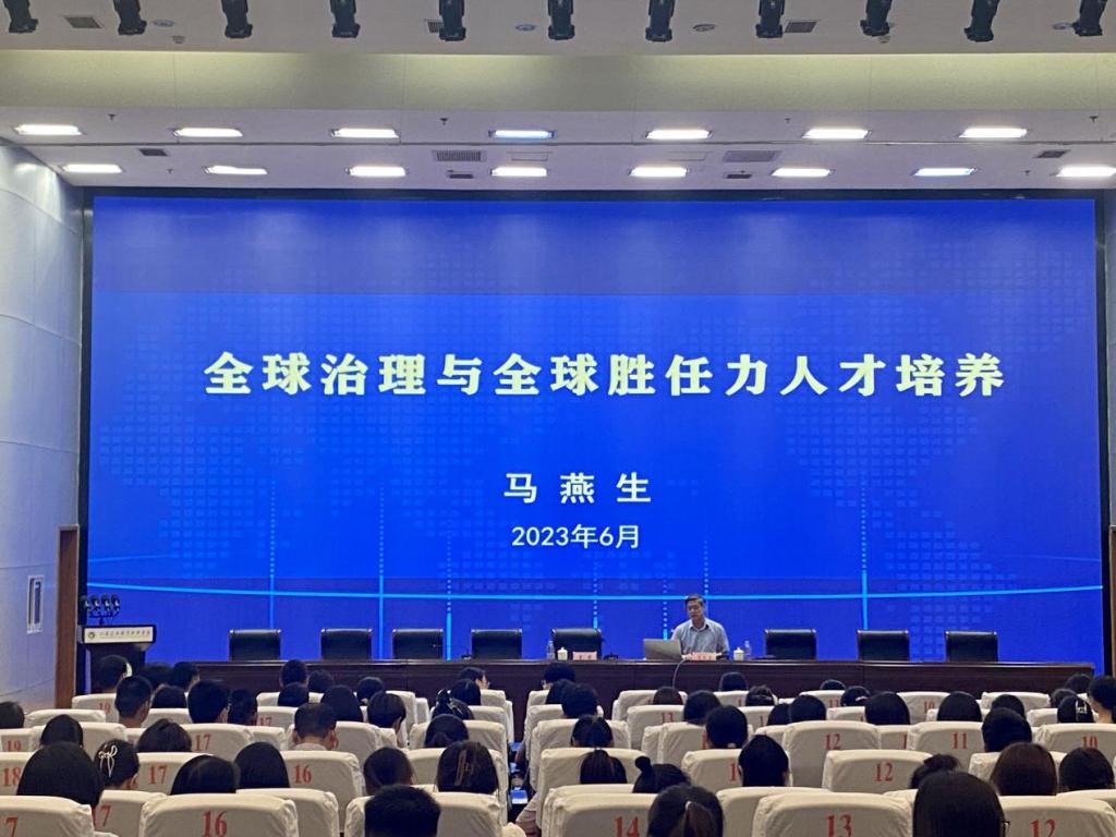 6月14日下午,应组织人事处与国际教育学院邀请,原中国常驻联合国教科文组织副代表、北京外国语大学副校长、中国驻法国使馆公使衔教育参赞马燕生来永利官网开展“全球治理与全球胜任力人才培养”讲座。讲座由学院副院长贾君主持,近三年入职的新教师以及部分“定制村干”学生代表聆听了此次讲座。