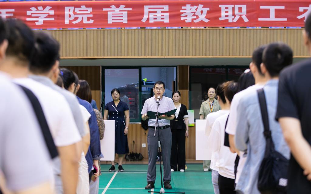 学院党委委员、纪委书记周国义为本次运动会致开幕辞,希望广大党员干部、教职工通过此次运动会能够锻炼身体,愉悦身心,感受农耕文化魅力,坚定文化自信。