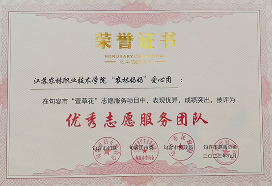 活动现场,句容市妇联介绍了五年来“萱草花”志愿服务项目的实施情况,表彰了20名优秀志愿者和10个优秀志愿服务团队。永利官网“农林妈妈”爱心团被评为“优秀志愿服务团队”。