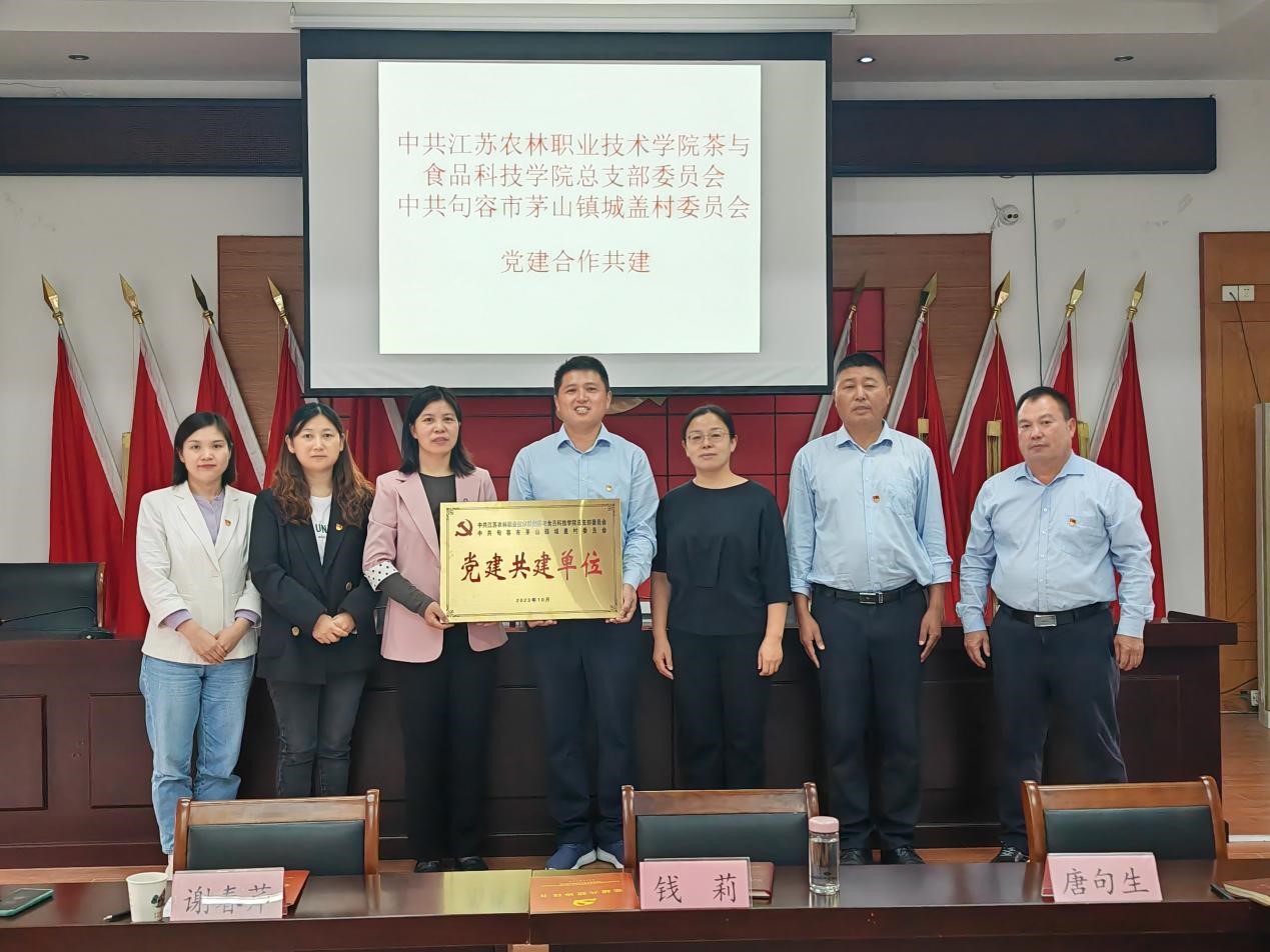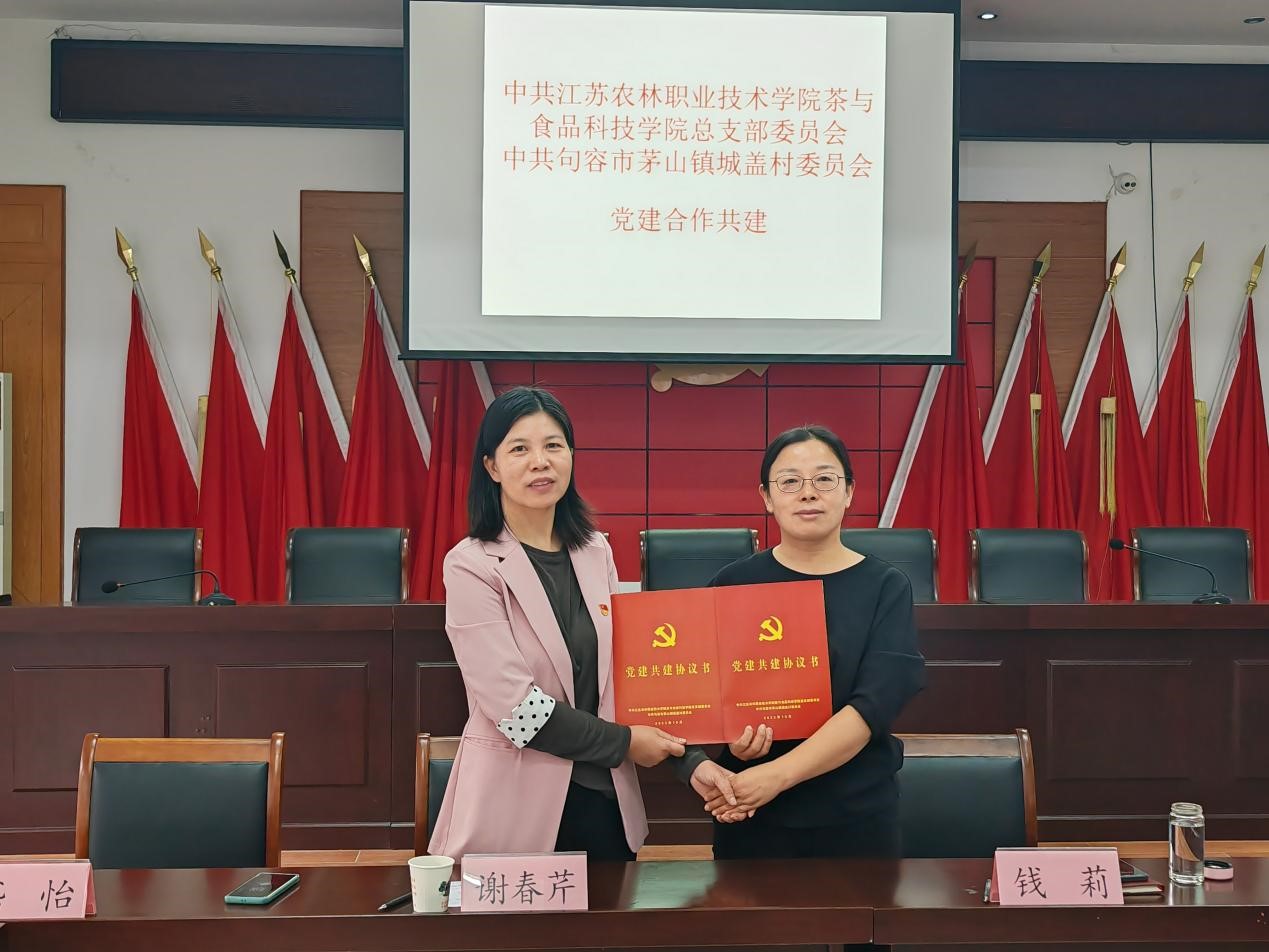 为充分发挥党建工作的核心引领作用,积极构建“资源共享、优势互补、结对帮带、双向促进”的党建格局,10月14日下午,茶与食品科技学院党总支书记谢春芹等一行3人赴句容市茅山镇城盖村举行党建共建签约活动,句容市茅山镇党委副书记钱莉、茅山镇城盖村党委书记唐句生等参加了活动。