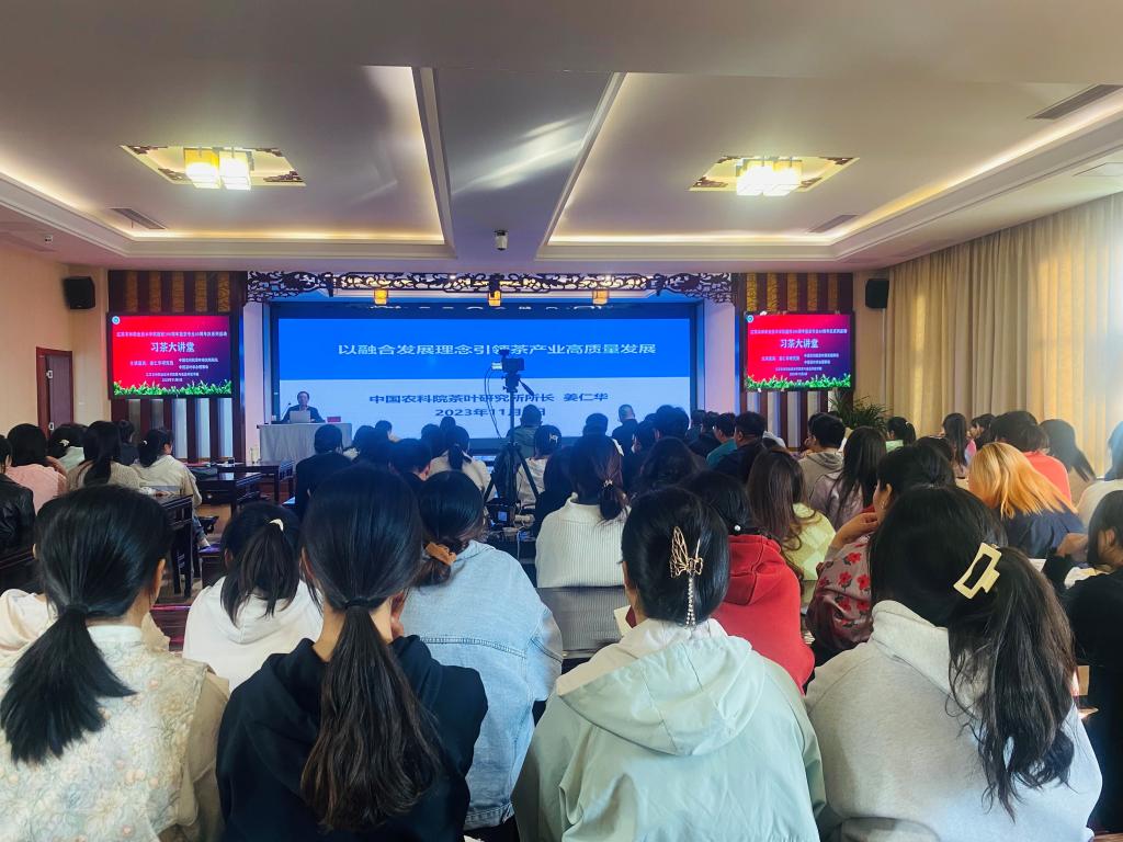 春种秋收,77779193永利集团建校100周年暨茶专业40周年之际,为了让学生更好的了解产业发展现状和专业办学特色,11月9日,茶与食品科技学院特邀中国农业科学院茶叶研究所所长、中国茶叶学会理事长姜仁华研究员,作题为“以融合发展理念引领茶产业高质量发展”主题讲座,茶专业近170名师生参加会议,茶与食品科技学院王润贤教授主持活动。