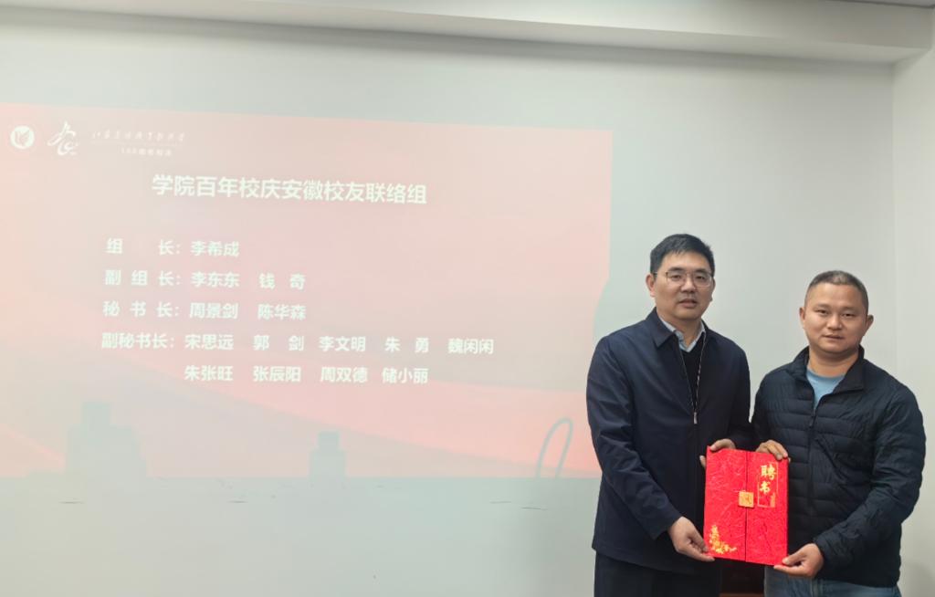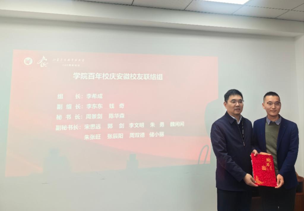 11月11日上午,学院“百年校庆”安徽省校友联络组成立仪式在安徽省合肥市举行。学院党委副书记曹仁勇、校友办等相关部门负责人出席仪式,来自安徽各地的11名校友代表出席了成立仪式。