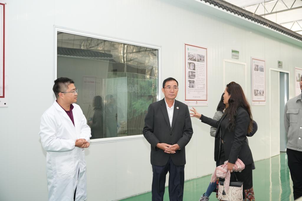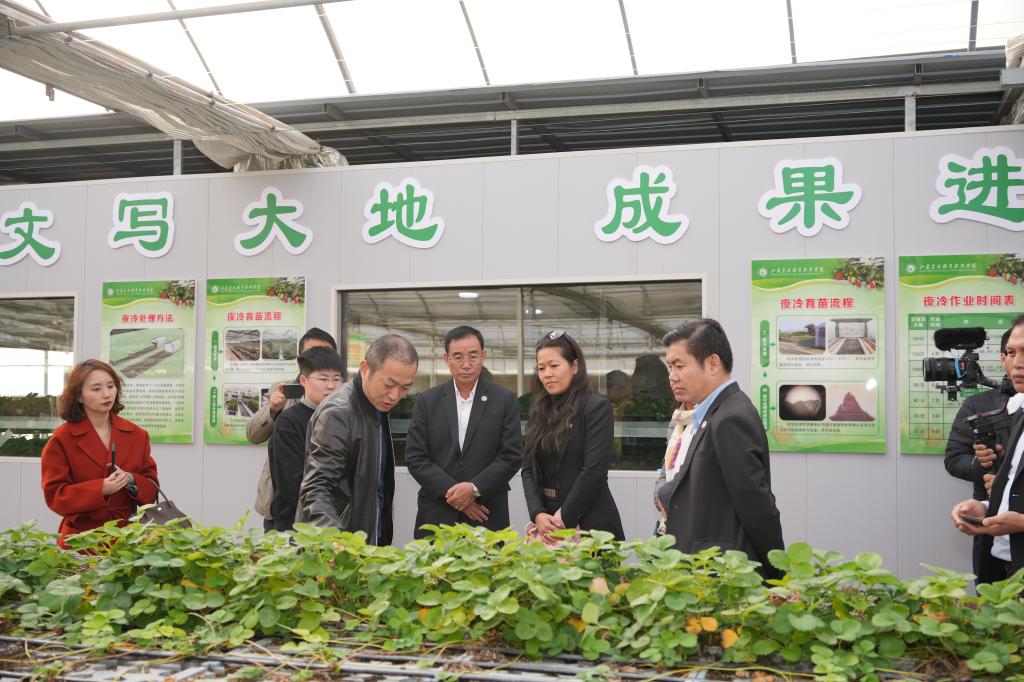 在访问期间,坡西·体达皖副校长一行及智慧农业职教联盟负责同志一同参观了永利官网江苏农博园实训基地。农学园艺学院副院长贾思振副院长介绍了学院近年在草莓育种培育以及相关技术、设施推广方面取得的进展,学院杰出校友华梦丽向国际友人介绍了校企合作方面的成果,尤其是高品质草莓相关技术的推广与应用。坡西·体达皖副校长一行在品尝特色草莓品种后赞不绝口,提出要引进学院在草莓种植方面的先进技术,双方合作在老挝推广草莓现代化种植技术。茶与食品科技学院樊金山老师介绍了永利官网在食用菌种质资源库建设以及特色食用菌产品方面开展的工作,希望未来挖掘老挝食用菌方面的独特资源,双方共同推进食用菌产业的发展。