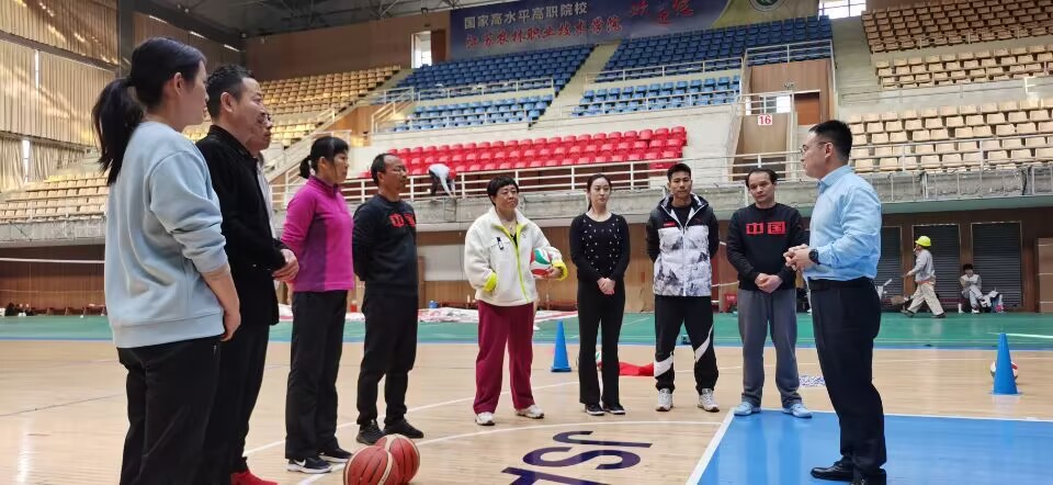 赛前学院党委委员、纪委书记孙俭强调体育技能是体育教师业务能力的一部分,体育教师要将党建工作与业务能力深度融合,形成互动联合、共建共赢的良好局面。