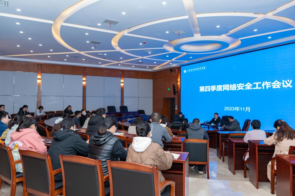 11月23日下午,学院第四季度网络安全工作会议在大学生艺术活动中心107召开。党委委员、副院长颜志明出席会议,现代教育技术中心主任高为将主持会议,各部门网络安全和数据管理员、现代教育技术中心全体人员参加。