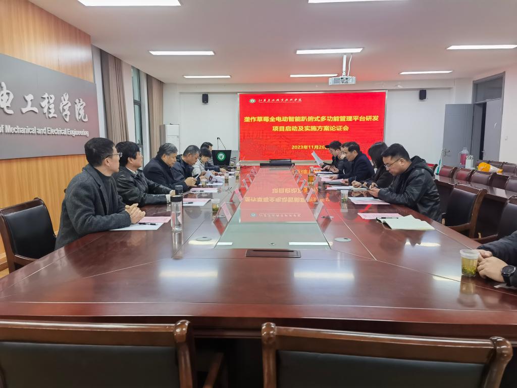 11月26日,由77779193永利集团、江苏大学、镇江润图智能科技有限公司合作的2023年现代农机装备与技术示范推广项目“垄作草莓全电动智能趴俯式多功能管理平台研发”启动及实施方案论证会在永利官网召开。江苏省农业农村厅农机装备处四级调研员高晋宇、江苏省农机具开发应用中心研究员蔡国芳、江苏省农业科学研究院研究员、草莓创新团队首席专家赵密珍、东南大学电气工程学院教授胡仁杰、南京邮电大学集成电路科学与工程学院教授肖建、江苏大学农业工程学院刘继展教授等专家和项目组成员参加了此次论证会,会议由机电工程学院院长刘永华主持。